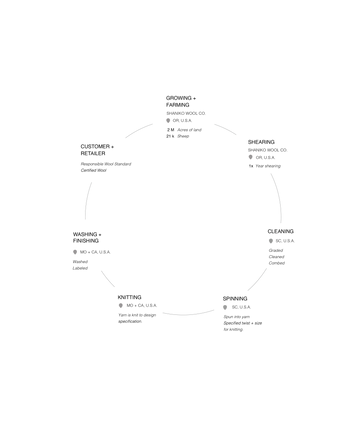 Our sweaters are produced entirely in the U.S. with 100% Shaniko Wool Company fine, undyed Merino Wool allowing for a significantly lower carbon footprint than traditionally dyed wool that is sourced through a globalized supply chain.