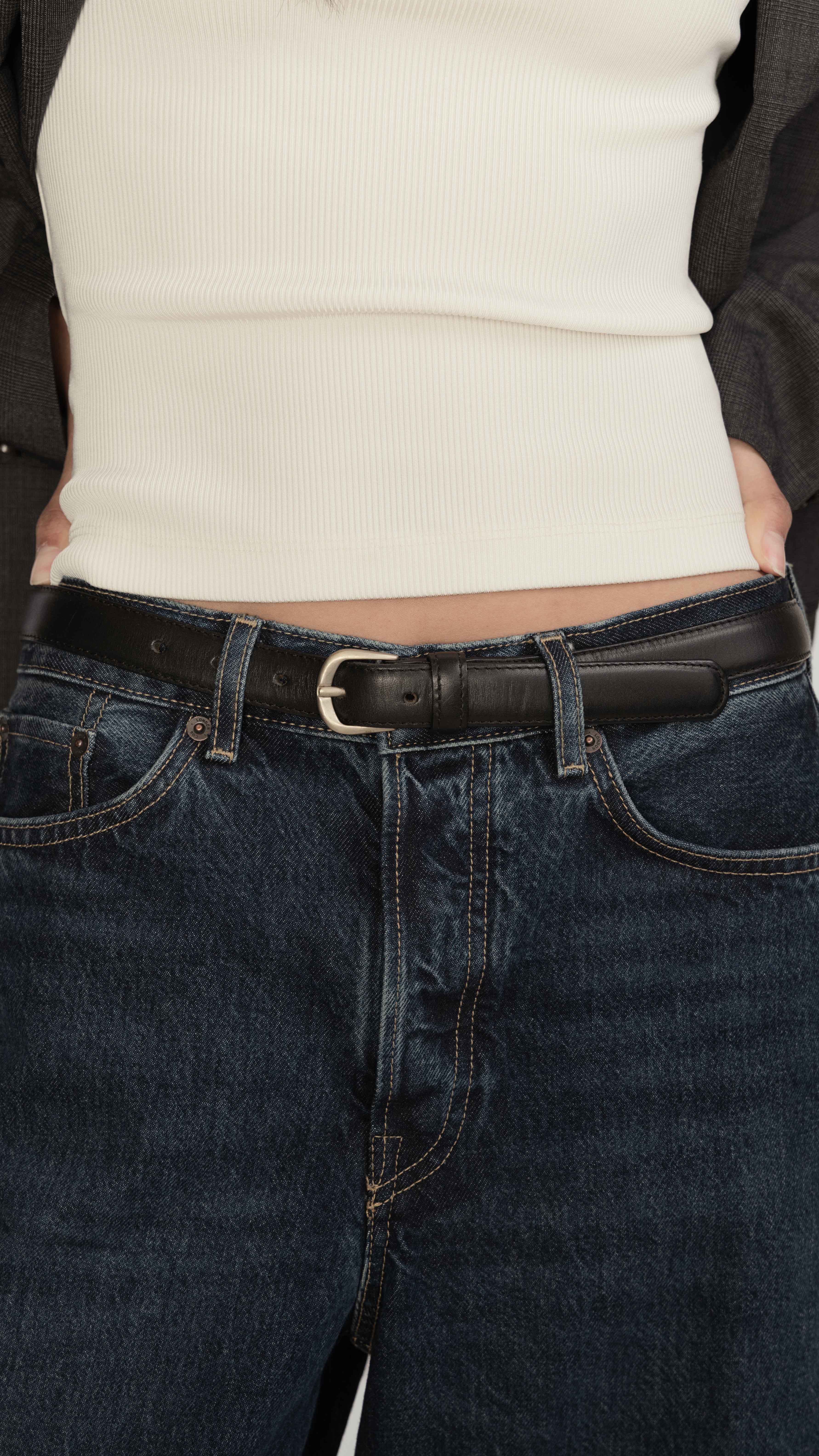 A thin leather belt that is designed for everyday wear. Handcrafted for exceptional durability and thoughtful practicality. An accessory made to reflect a lifestyle that prioritizes quality craftsmanship, hard-wearing functionality, minimalist, and timeless design.